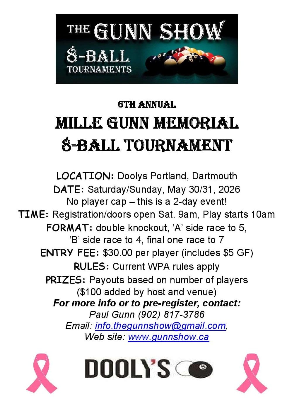 "ANNUAL" MILLE GUNN MEMORIAL POOL TOURNAMENT (NO PLAYER CAP)